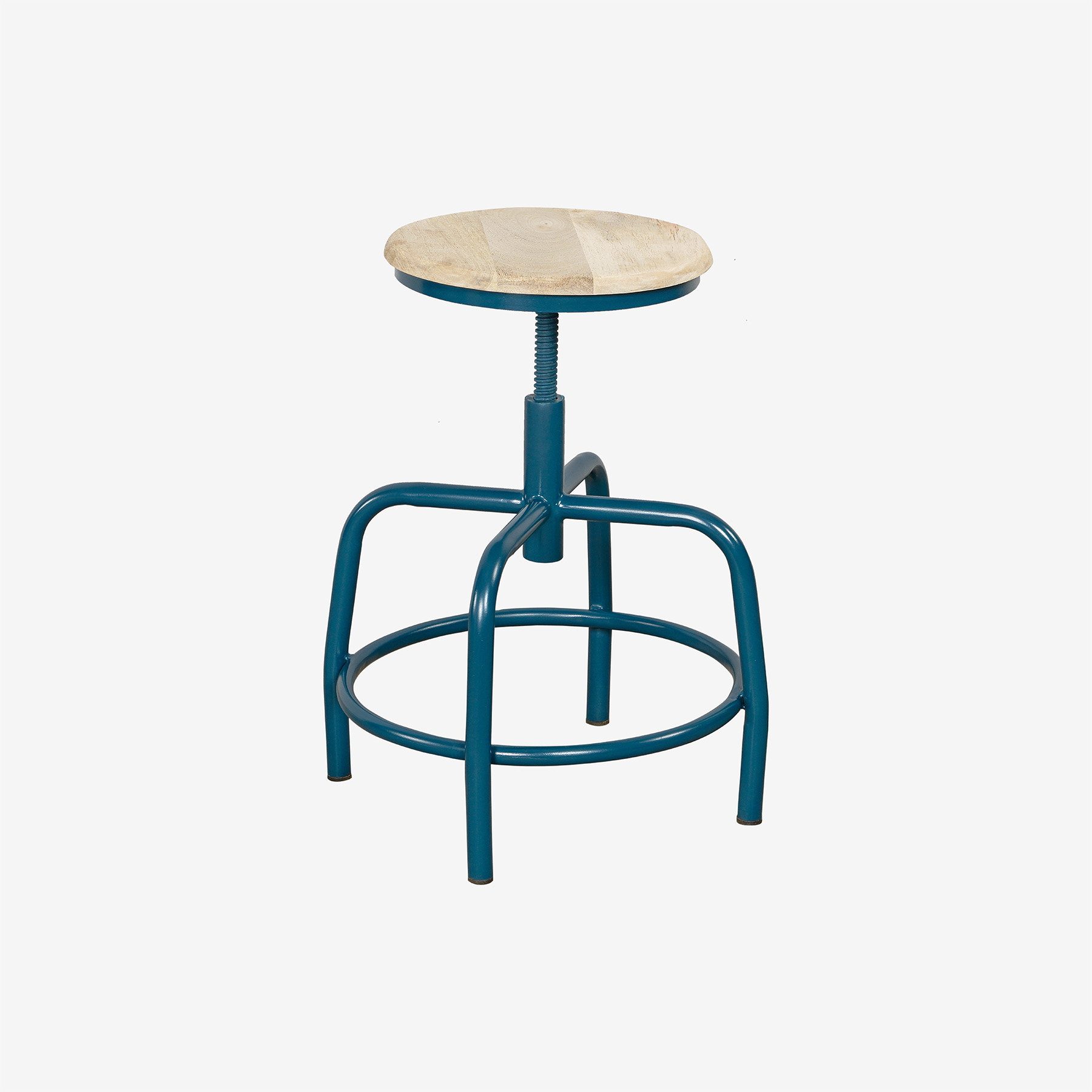 Krukje op olijf groen metalen onderstel met opdraaibare houten zitting.