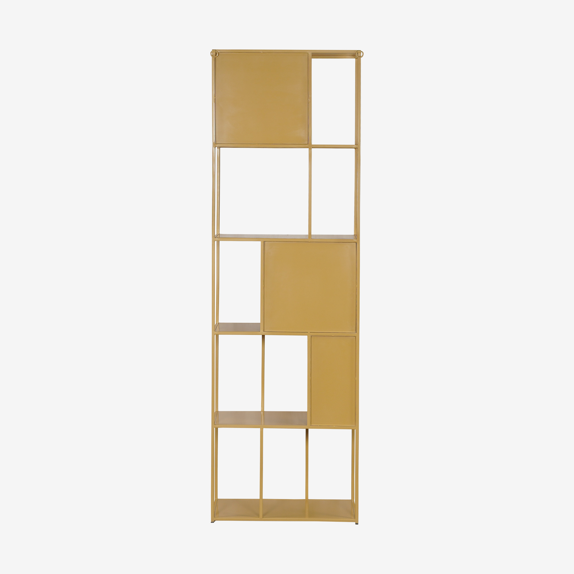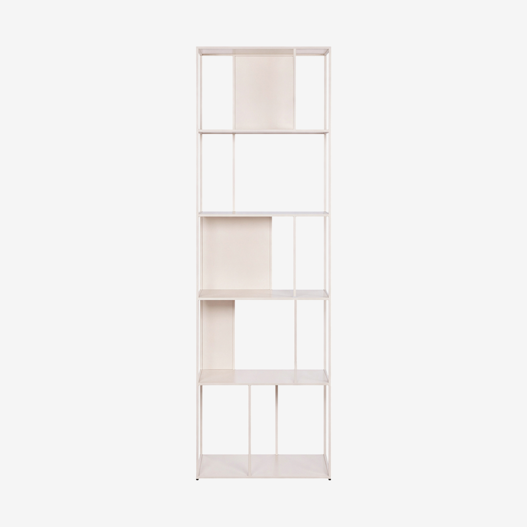 Solution de rangement élégante en métal couleur sable.