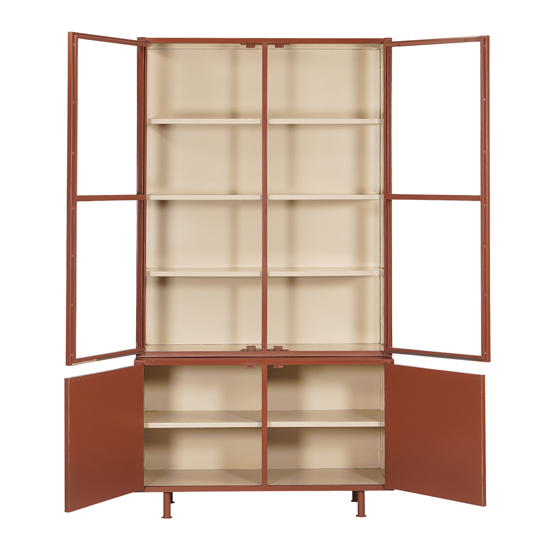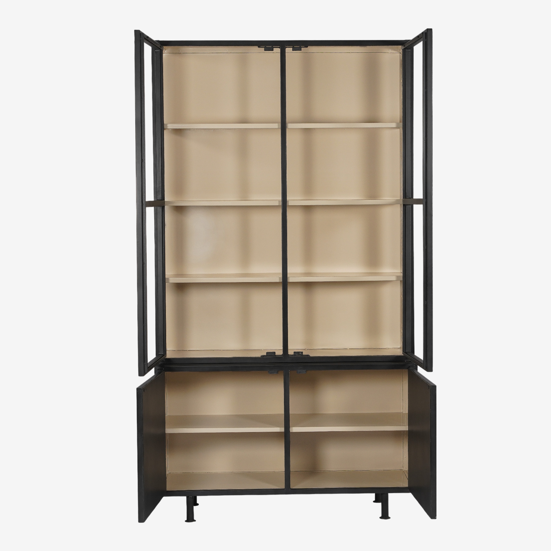Metalen vitrinekast met 4 deuren. Ambachtelijk gemaakt met vintage look.